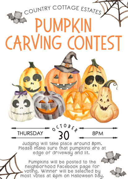 ?? Pumpkin Carving Contest will take place on Thursday 10/30 with