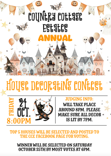 10/24 with judging between 7-8pm. The top 5 houses will be chosen